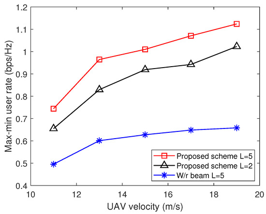 Max-min user rate versus UAV velocity.