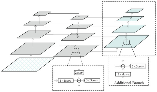 In addition, since the new branch has the same number of feature mapping channels as the top-down path, the 1 × 1 convolution is omitted, simplifying the model and reducing the computational burden. By adding a bottom-up path, effective multi-scale feature fusion can be achieved, resulting in richer feature representations. This approach not only aids in capturing subtle stylistic variations and local details in the fonts, but also optimises feature representation to better accommodate complex text-recognition tasks.