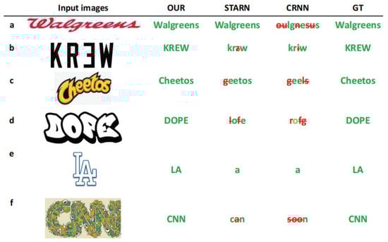 - Shi, B.; Wang, X.; Lyu, P.; Yao, C.; Bai, X. Robust Scene Text Recognition with Automatic Rectification. In Proceedings of the IEEE Conference on Computer Vision and Pattern Recognition, Las Vegas, NV, USA, 27–30 June 2016; pp. 4168–4176. [Google Scholar] [CrossRef]