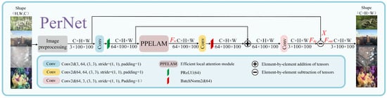 The network is concise, efficient and characterized by stable parameter settings, enhancing its stability with its progressive nature. The plug-and-play feature enhances the flexibility of the network architecture, allowing experimentation with various network models. The PPELAM module, being plug-and-play in our network architecture, fully considers the continuous correlation of degradation in both spatial horizontal and vertical directions. Our PerNet can be represented mathematically as follows: