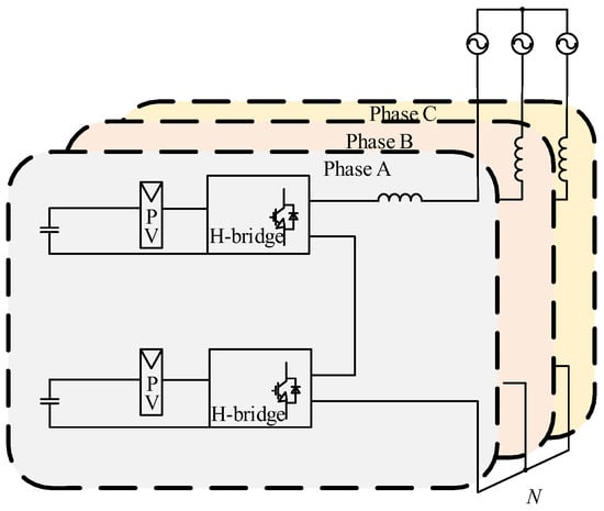 The issues of energy and ecology, which are crucial challenges faced by all nations worldwide, are intricately linked to the survival and development of humanity [1,2]. Photovoltaic energy has the characteristics of being clean, renewable, and widely distributed. It can reduce the dependence of modern industry on traditional fossil fuels and promote energy transformation and low-carbon development, which is particularly important in the current context [3,4]. Currently, countries worldwide are researching how to efficiently develop and utilize photovoltaic (PV) energy, with a primary focus on grid-connected photovoltaic systems for electricity generation. As inverters are the energy conversion interface within photovoltaic systems, their performance critically determines the overall system cost [5]. Currently, multi-level inverters are widely employed, with the neutral-point clamped, flying-capacitor [6], and cascade H-bridge (CHB) [7] architectures being the most prevalent. Among these, the cascaded H-bridge (CHB) structure holds significant research and application value due to its features. It has several advantages, such as maximizing the utilization of DC sources, low harmonic content, modular composition, and the ability to output higher levels of voltage.