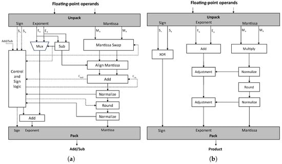 Standard floating-point operations for (a) addition; and (b) multiplication [33].