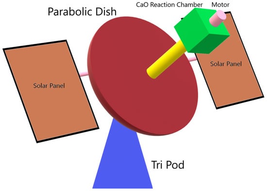 During the day, electrical power would be produced using solar panels that track the Sun. Additionally, during these hours, it is proposed that a reflective parabolic dish of adequate size would also track the Sun and solar recharge the Calcium Oxide Chemical Reactor Chamber with an adequately high temperature, converting all of the spent Calcium Hydroxide back into high-energy constituent Calcium Oxide and water vapor for collection and reuse. During the night, this fully recharged Calcium Oxide Chemical Reactor Chamber would be put into action for the requisite nighttime power generation activities. Placed in a vertical orientation and above the parabolic dish, this reactor chamber, of adequate size and with a cubic shape, will be used in the production of electrical power in place of the daytime solar panels.