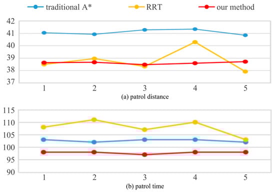 | Methods | Average Patrol Distance (/Meter) | Average Patrol Time (/Second) |