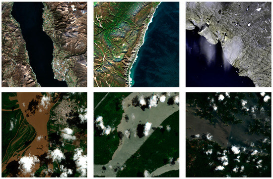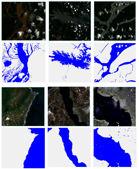 We employed the Earth Surface Water Knowledge Base (ESWKB) dataset, which is publicly available [25]. This dataset extensively utilizes Sentinel-2 satellite imagery resources and carefully selects 95 different scenes to encompass various types of water bodies under diverse environmental conditions. The labeling of surface water was carried out using six medium-resolution spectral bands: blue, green, red, near-infrared (NIR), mid-infrared 1, and mid-infrared 2. The utilization of this combination significantly aids in the extraction of water bodies by leveraging spectral characteristics [26].
