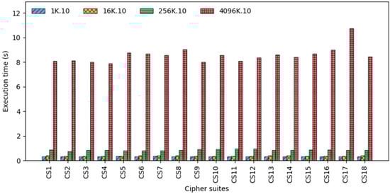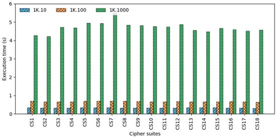 Figure 2 illustrates the results of experiments based on the number of sessions. As the session count increases, the execution time also rises but, again, the increase is not strictly linear compared to the session count. Interestingly, there is no significant difference in performance based on the cipher suite used, which is worth noting.