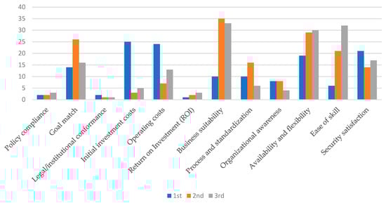 This study modifies the “Suitability Assessment Guideline for Adopting Cloud Computing in The Public Sector” developed by the Korea Information and Communication Technology Association [18] to suit the private sector. In the private sector, setting common adoption criteria is challenging due to industry-specific characteristics and individual business situations. Therefore, based on criteria calculated by public evaluation organizations, we aimed to use objective criteria that include economically significant factors for companies. This means that our study not only applies public sector guidelines but also expands economic factors to be fully utilized in the private sector. Additionally, we decided to apply a broader concept, as cloud ERP is part of SaaS, which is a subset of cloud computing. This approach enables comparative analysis based on common criteria. These factors have been organized into four main categories to enhance their relevance in the decision-making process for companies considering cloud ERP adoption.