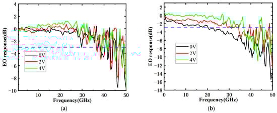 Measured electro-optic (EO) responses: (a) O-band; (b) C-band.