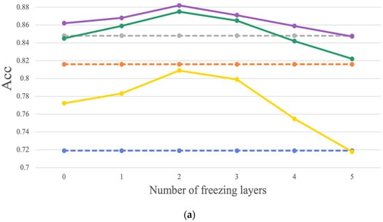 In this study, we propose a more effective method of knowledge transfer by selecting an appropriate transfer learning domain and training within that domain, as opposed to general knowledge transfer. In this section, we evaluate the performance of S3 based on the number of layers frozen, using S1 as the control group for comparison. The evaluation was conducted on a model proposed by the study with five layers, each with [100, 100, 100, 100, 100] units, by sequentially freezing from the top layer to the lower layers.
