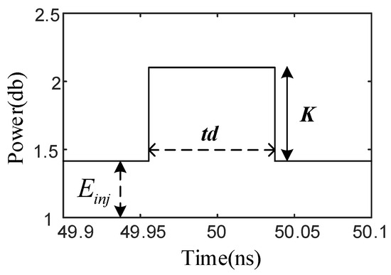 A typical external injection signal. Einj is the constant injection level, K is the controllable perturbation strength, and td is the perturbation time.