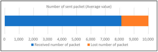 The IoT Sensor sent 10,000 packets and the fog server received 8118 packets, showing that 1882 packets were lost due to the attack. This can be seen in Figure 5. This experiment was attempted 50 times, and this is the average value. The test results showed that the attack mitigation model ensured more than 80% packet delivery on average, which was affected by a combination of detection time, the time taken for logs to be stored in the DB, the time taken for running the filtering algorithm, the time taken to be registered in the blocklist, and resource usage.