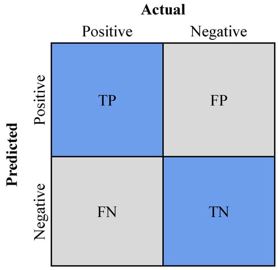 A confusion matrix is a summary tool that presents prediction results in tabular format. As Figure 6 shows, TP (true positive) and TN (true negative) denote the number of samples correctly predicted as positive and negative classes, respectively, and FP (false positive) and FN (false negative) represent the number of samples incorrectly predicted as positive and negative classes, respectively. It details the prediction accuracy for each class. This visual representation allows us to clearly identify the misclassifications made by the model, specifically which classes are easily misidentified as other classes by the model. This tool is crucial for analyzing and improving the classification performance of the model.