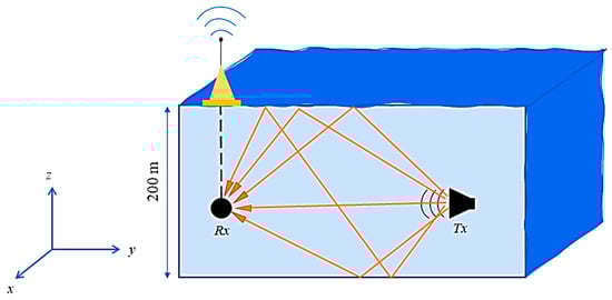- For each propagation path, the time delay, gain, Doppler coefficient, reflection loss, and area-dependent propagation loss are assumed to be known. Figure 12 illustrates the type of propagation paths and the locations of the receiver (DIFAR sensor) and the transmitter (target).