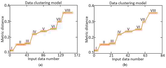 The data cluster analysis results from the training sample of compressor turbine blade cross-section Ti temperature field values (Table 1) revealed eight classes (classes I…VIII). That is, eight groups were present, which was indicated by similarities in both the training and test sample compositions (Figure 4).