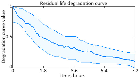 The developed method for degradation curve construction, based on predicting parameters and similarities with past patterns, makes it possible to accurately predict service life and plan maintenance, and the root-mean-square error between the predicted and actual remaining life was only 0.0058 (0.5 8%), which confirmed the model’s high adequacy.