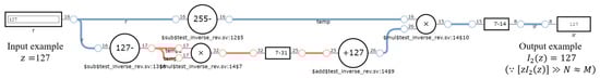 Overview of circuit example of proposed algorithm (no iteration) using Verilog (visualization created using https://digitaljs.tilk.eu (accessed on 14 May 2024)) [32].