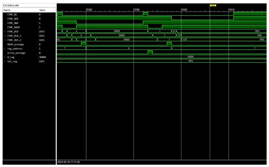 The FSMC interface waveform captured by the embedded logic analyzer (ILA).