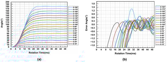 Test results of different angles of motor forward rotation. (a) Curve of rotation trajectory. (b) The corresponding error angle.