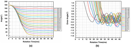 Test results of different angles of motor reverse rotation. (a) Curve of rotation trajectory. (b) The corresponding error angle.
