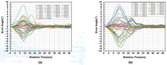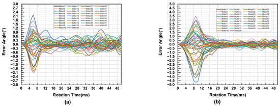 Error angle curves for 135° and 180° of rotation of the 38-axis motor. (a) Error angle at 135° rotation. (b) Error angle at 180° rotation.