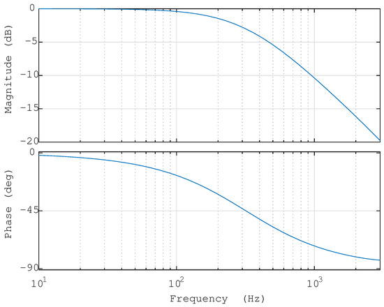 is the internal model of the system, which affects the steady-state accuracy of the system. Increasing can lead to an increase in controller gain, but it may also result in decreased system stability. Typically, a constant less than 1 is used. In this paper, it uses ; represents the compensator; denotes the repeat control gain with ; is the lead link, and it is utilized for phase lag compensation; and is a second-order low-pass filter, which is employed to correct the middle and low frequency band of the control object to achieve 0dB and ensure system stability. Its continuum takes on the following form: