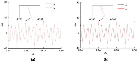 Tracking current diagram during steady-state. (a) Repeat PI–LADRC decoupling control. (b) Repeat PI control.
