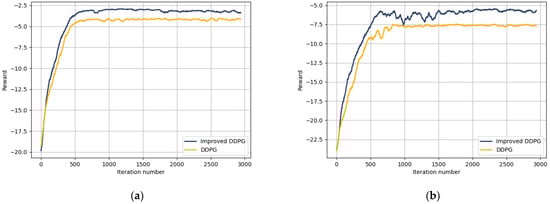 We compare the proposed improved DDPG algorithms with standard DDPG as a benchmark algorithm, which was used in [31]. Then, we compare the system model proposed in Section 2 with three benchmark schemes as follows: