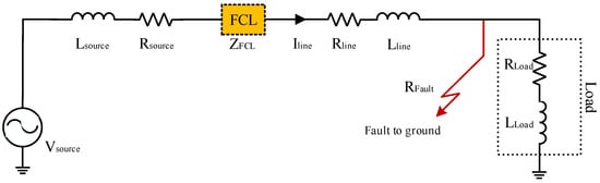 Figure 3 presents the equivalent circuit of the power system with FCL protection. The impedance of the power line during normal operation is given by while the load impedance is expressed as The sinusoidal voltage source is given by ).