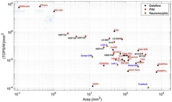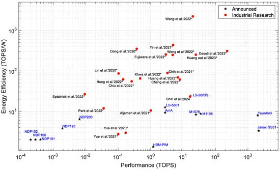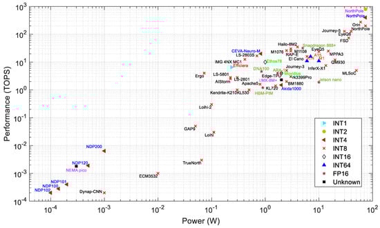 Research Group | Name | Power (W) | Process (nm) | Area (mm2) | Precision INT/FP * | Performance (TOPS) | E. Eff. (TOPS/W) | Architecture | Reference |