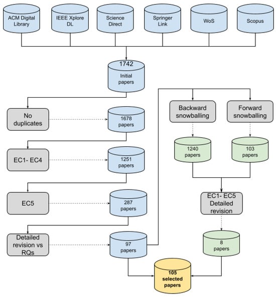 - Brereton, P.; Kitchenham, B.A.; Budgen, D.; Turner, M.; Khalil, M. Lessons from applying the systematic literature review process within the software engineering domain. J. Syst. Softw. 2007, 80, 571–583. [Google Scholar] [CrossRef]
