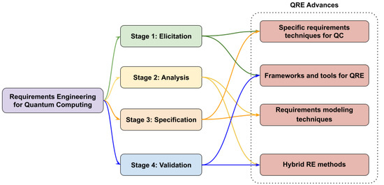 No specific methods or models have been developed to help carry out the RE stage in QC. However, efforts have been made to advance definitions of functional and non-functional requirements [14]. The need for established approaches in this area indicates the need for research and development of tools and techniques to help software engineers define, document, and manage requirements in hybrid systems involving classical and quantum systems. Adapting and evolving RE methods to encompass quantum features are essential to developing software that can operate effectively in the quantum paradigm [13].