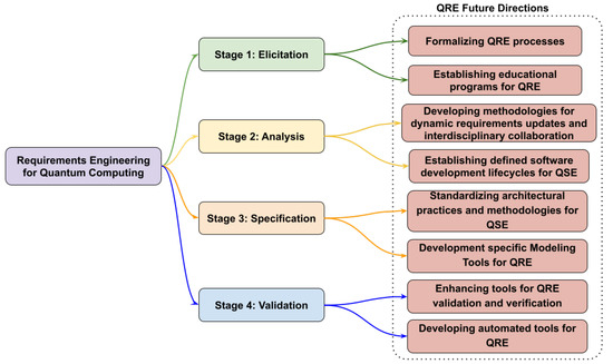 According to [50], the development of specific practices for quantum software testing is required, as well as other SE practices, such as RE, which are of less concern at the current stage due to the lack of real-world applications. Furthermore, the RE for QC will also differ from the classical counterpart, as mentioned in [14,51].