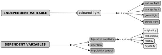 - H1. Coloured lighting configurations in primary school classrooms help to enhance students’ figurative creativity.