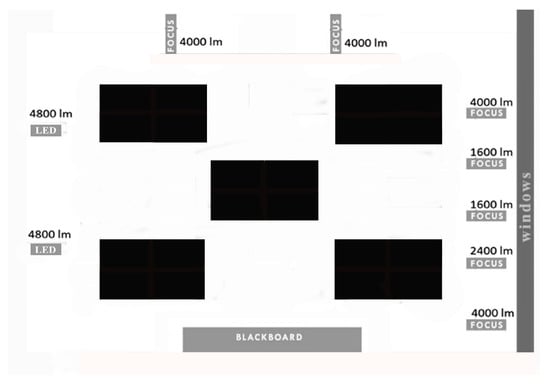 - Mogas-Recalde, J.; Palau, R. Classroom lighting and its effect on student learning and performance: Towards smarter conditions. In Ludic, Co-Design and Tools Supporting Smart Learning Ecosystems and Smart Education: Proceedings of the 5th International Conference on Smart Learning Ecosystems and Regional Development; Springer: Singapore, 2021; pp. 3–12. [Google Scholar] [CrossRef]