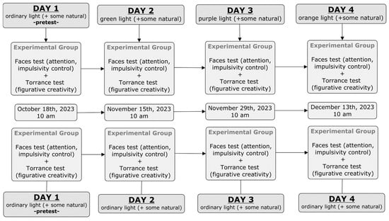 - Memory and learning effects, as outlined by Chacón-Moscoso et al. [35], were addressed by spacing pretest data collection one month after the first light scenario, with subsequent light scenarios spaced two weeks apart. Additionally, to prevent the influencing of students’ behaviour and affective processes, the study’s purpose was not disclosed, and all activities were presented as routine classroom procedures.