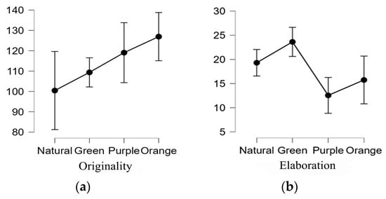 | Originality | 127.526 Orange light (experimental group) | 138.000 Orange light (experimental group) | 87.250 Natural light1 (control group) | 80.000 Natural light1 (control group) |