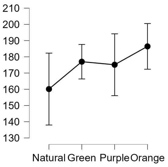 | Elaboration | 22.421 Green light (experimental group) | 18.500 Natural light (experimental group) | 12.471 Purple light (experimental group) | 11.000 Purple and orange light (experimental group) |
