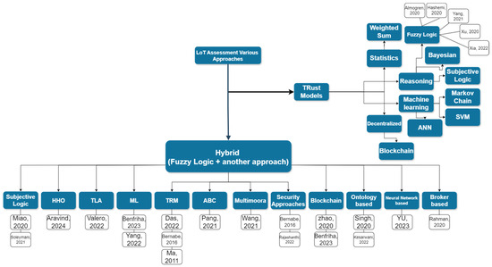 Yu et al. introduce a fuzzy attribute trust algorithm as a supplementary approach to address trust evaluation challenges in Artificial Intelligence of Things (AIoT) networks. The fuzzy algorithm addresses the lack of interaction records and uncertainty in AIoT environments, allowing for a more accurate evaluation of smart terminals’ trust values. It also mitigates mismatches between trust values and the real-time state of smart terminals. The fuzzy algorithm is scalable and adaptable, allowing for the addition of new fuzzy factors to accommodate different application scenarios. The model’s performance is competitive with existing approaches, demonstrating its effectiveness in addressing trust evaluation challenges in AIoT networks. The model’s performance, adaptability, and scalability contribute to its potential for enhancing the trustworthiness of smart terminals in AIoT environments [30].