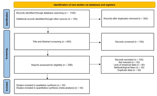 The authors ensured a very rigorous process of study selection. First, the literature was searched on SCOPUS, Web of Science, PubMed, Google Scholar, and other sources, and 1200 records were initially selected. Records were then culled by deleting duplicates, leaving a total of 1000 records from which articles were screened by their titles and/or abstracts. Through this screening process, 700 records were excluded as they did not meet the eligibility criteria. Thus, 200 potentially relevant articles containing full texts were identified, to which the authors’ selection criteria were applied. Despite this, the remaining 150 articles were considered and excluded due to factors such as little relevance, lack of data or empirical analysis, methodological issues, and repetition. After the initial screening and extraction of relevant data for 107 studies, 50 studies were made the basis for the final qualitative and quantitative synthesis, faithfully reflecting the current state of research in the field of memory forensics. Figure 1 shows the PRISMA 2020 Flow Diagram.