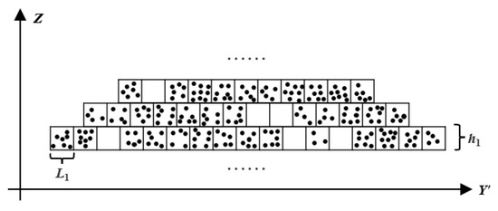 In practical analysis, not all layers with the above two characteristics are key layers required for subsequent calculations. The top N1 maximum values are selected to further filter the layers here. Subsequently, important layers can be further determined by calculating the filling rate of each layer. The specific calculation process of the filling rate is as follows: important layers are divided into N2 grids at a fixed spacing L1 along the Y′-axis, and the proportion of grids containing points n to the overall count of N2 grids is defined as the filling rate f, as shown in Figure 6.