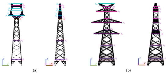 The key segmentation positions of the pylon. (a) Type-b pylon. (b) Type-c pylon.