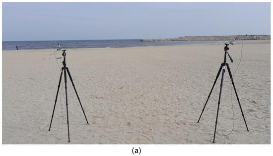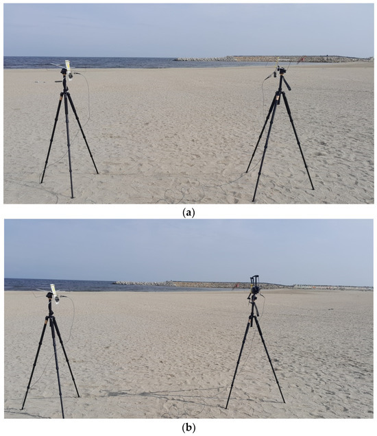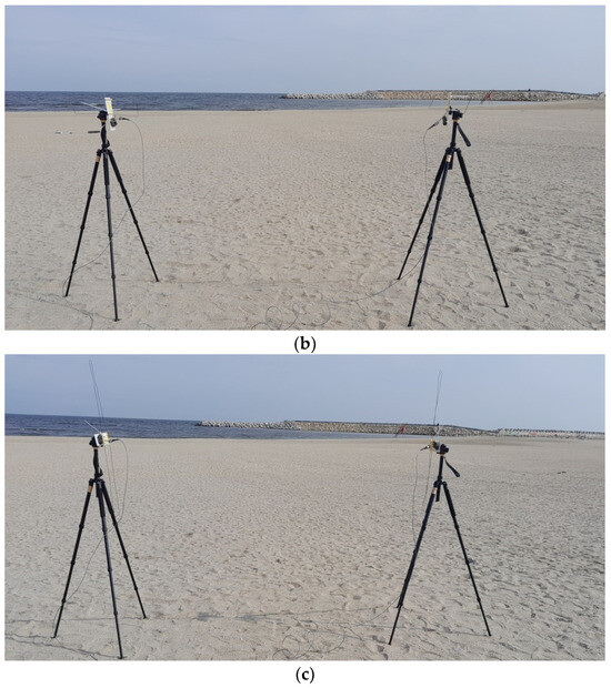 The antennas were placed at 2.5 m away one from the other, face-to-face, in horizontal and vertical positions (Figure 9). Both tripods were adjusted to a height of 1.25 m.