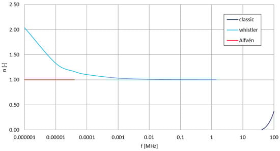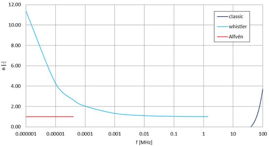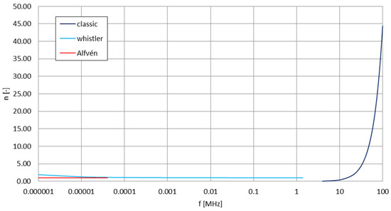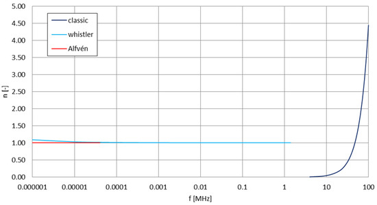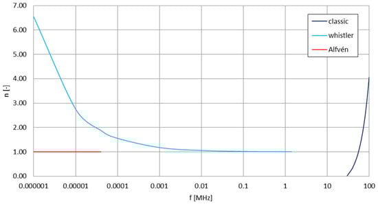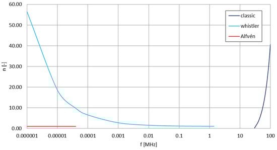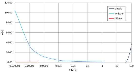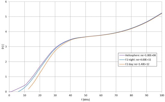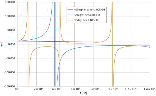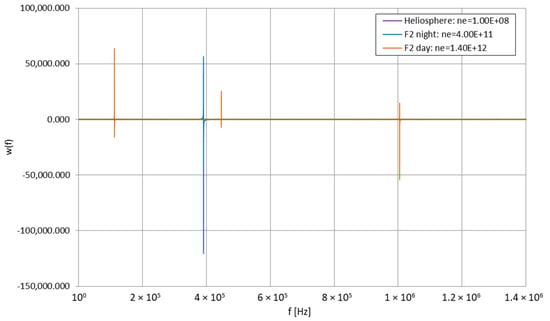 - Wunsch, D.A. Radiation from a strip of electric current in magnetoionic medium. Can. J. Phys. 1967, 45, 1675–1691. [Google Scholar] [CrossRef]