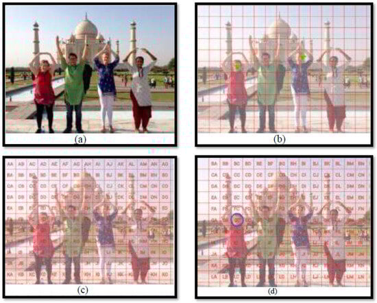 The SelfiePass scheme, proposed by Rajarajan, S. and colleagues in 2021 [], as shown in Figure 8, presents a remedy for the susceptibility of graphical passwords in the presence of shoulder surfing threats. By allowing users to input click points on images (a) without direct contact with the image cells, the scheme (b, c, d) employs a grid consisting of permutations of two alphabets, accompanied by a secret token transmitted through headphones to guide users in selecting the click points.