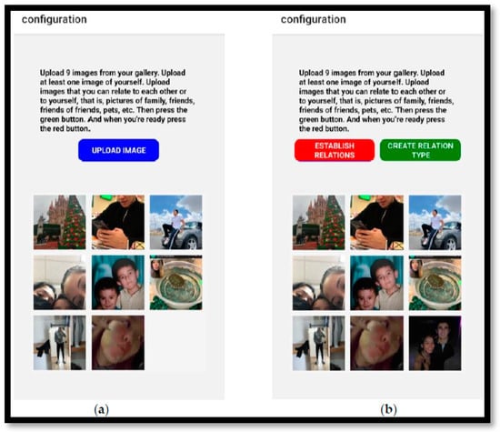Multi-factor authentication (MFA) []. (a) Image loading screen; (b) The image upload screen once the user has uploaded 9 images.