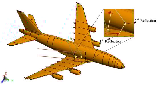 - Baden, J.M.; Tripp, V.K. Ray reversal in SBR RCS calculations. In Proceedings of the 2015 31st International Review of Progress in Applied Computational Electromagnetics (ACES), Williamsburg, VA, USA, 22–26 March 2015; pp. 1–2. [Google Scholar]