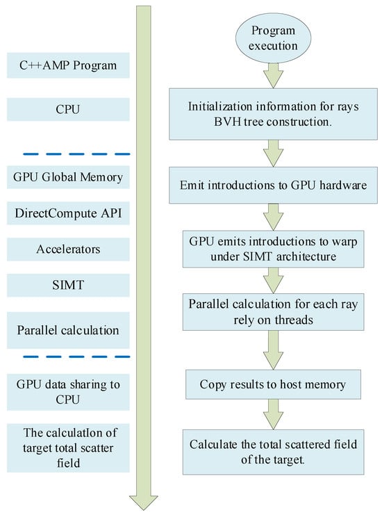 - Tao, Y.; Lin, H.; Bao, H. GPU-Based Shooting and Bouncing Ray Method for Fast RCS Prediction. IEEE Trans. Antennas Propag. 2010, 58, 494–502. [Google Scholar] [CrossRef]