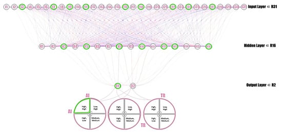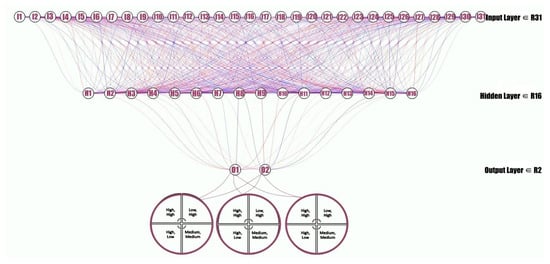 | Input Layer ∈ R31 I | Hidden Layer ∈ R16 H | Output Layer ∈ R2 O |