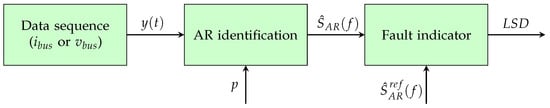 What we have collected in the mathematical model group, in [13], are further distinguished as “signal-based methods” and “model-based methods”: the difference is subtle in that the former consider local signals at low level (hardware level) with minimal processing and fast response times (as it may be for the protection circuits of MOSFETS and IGBTs), whereas the latter develop a more complex algorithm, based on some kind of modeling of the normal and exceptional (or faulty) behavior of the converter. The proposed method acquires high-level signals (accessible at the terminals of the converter, rather than at its internal semiconductors and components) and evaluates them by applying a spectrum synthesizing approach based on auto-regressive (AR) models.