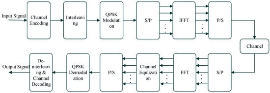 OFDM has attracted considerable interest from the research community due to its ability to combat the frequency-selective channel by splitting channel bandwidth into parallel subchannels. OFDM converts the frequency-selective channel into multiple flat-fading subchannels, and the received signal is the sum of all individual received signals from subchannels. The OFDM system is shown in Figure 3. For the frequency-selective channel, OFDM suffers from inter-symbol interference (ISI) and is sensitive to inter-carrier interference (ICI). To mitigate ISI, the guard interval, such as the cyclic prefix is appended ahead of the data frame. For ICI, the work [24] proposed that diversity combining can be employed to reduce the negative effects of ICI.